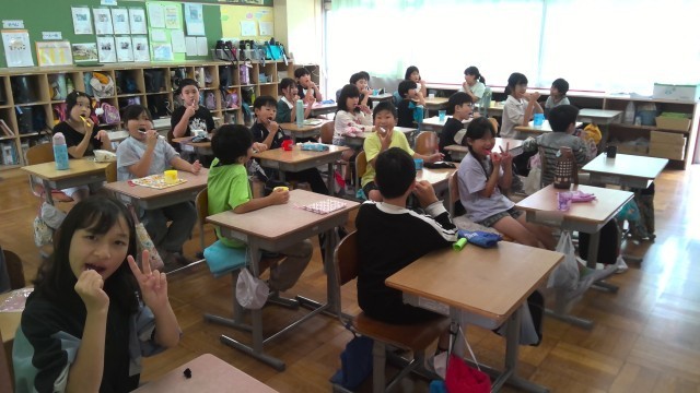 学校での歯みがきが初めての学年もありましたが、子どもたちは音楽に合わせて上手にみがくことができていました。