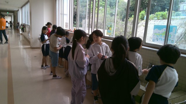 コロナウイルス感染症流行のためしばらく中止になっていた歯みがきですが、学校歯科医から助言を受け、2学期から再開しました。