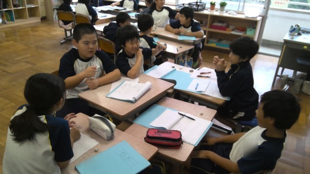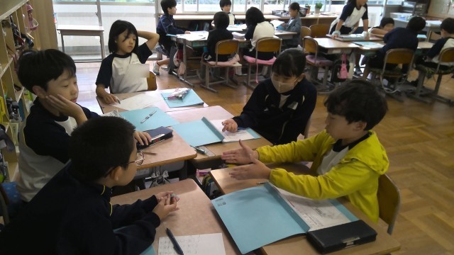 4年生の総合的な学習の時間ではサステナブル学習を継続しておこなっています。今日は、CO₂を削減するために、どんなことができたらよいか、子供たちの柔軟な想像力を働かせて、たくさんのアイディアを出し合い、発表し合いました。CO₂を吸い取って酸素に変えるキャラクターや、各学校にCO₂を減らす方法をレクチャーしてくれるロボット、ソーラーの力で動いて種まきをし緑を広げてくれる車、食べ残しを肥料に変えて、それで育てたものを給食にする機械(ソーラーで動き、分別の箱も付いている)など、いかに効率よくたくさんのCO₂を減らせるか、これまで学んだことをフル活用しながら、一生懸命考えたアイディアがたくさんでてきました。自分のアイディアを説明して納得させるためのプレゼンテーションも上手におこなっていました。