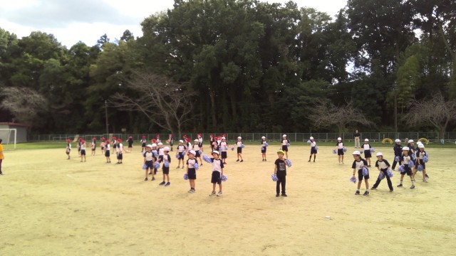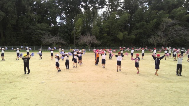 3,4年生で運動会のダンスの練習をおこないました。運動会本番も近くなり、色の違うポンポンを持って、モチベーションを上げながら元気よく踊っていました。