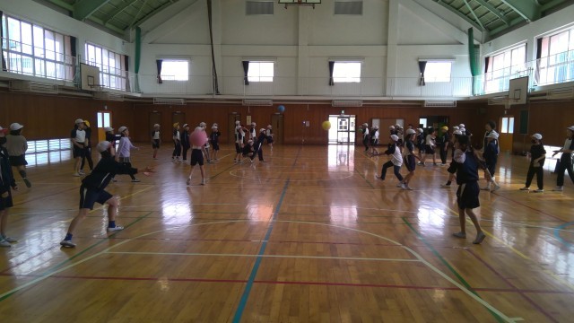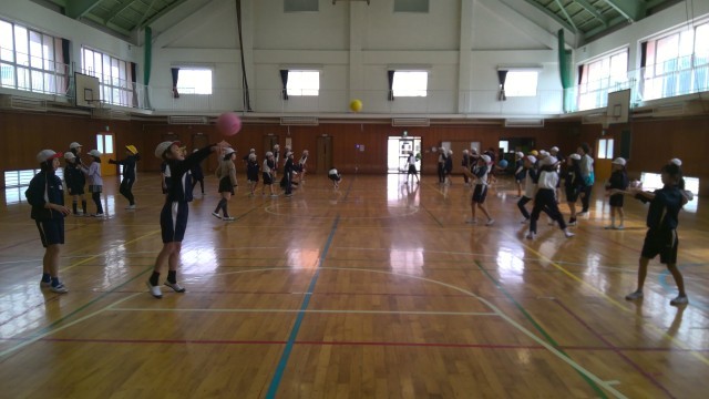 4年生の体育では、球技の基礎となる投げ方やキャッチの仕方を学習しています。今日は、壁に投げたボールをワンバウンドでキャッチできるように、投げる方向や距離や高さなどを考えながら投げました。友達にキャッチしてもらうためには、どこにどのような速さで投げるとよいか、試行錯誤しながら実践していました。後半になると落とさずに連続で投げたりキャッチしたりする数も増え、チームで一体感が出ていました。上達する楽しさが感じられたようでした。