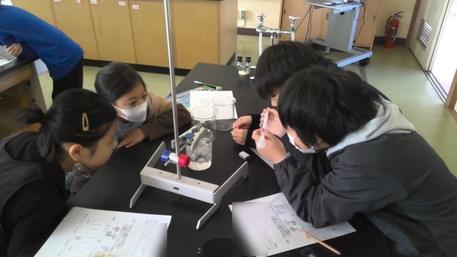 実験器具を、慎重に正しく使いながら、実験を行いました。