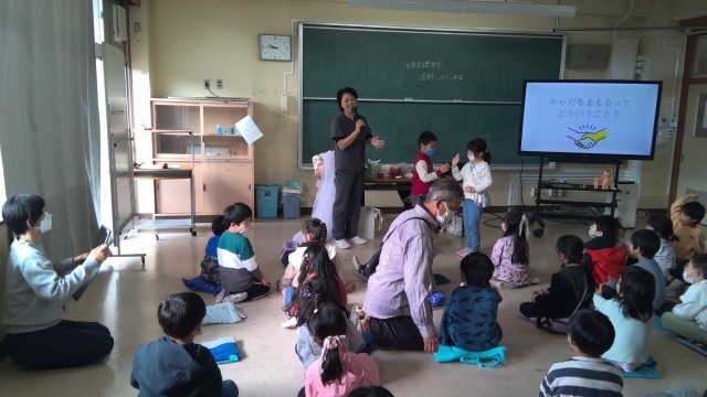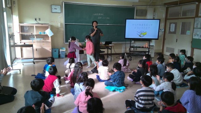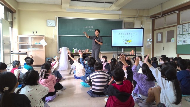 2時間目に性教育講演会がありました。『じぶんのこころとからだ』について学習しました。先生の話を聞き、質問に答えたり、実演してみたりして、こころとからだをどう大切にすれば良いかを教えてもらいました。一人一人に、「みんなはスペシャルなんだよ。」「生きているだけで100点満点なんだよ。」と語りかけてくれました。