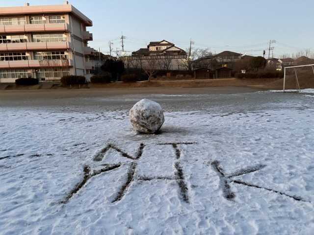 校庭を見渡すと、一体誰が作ったのか、巨大な雪だるまを発見。