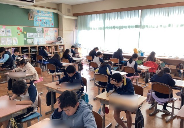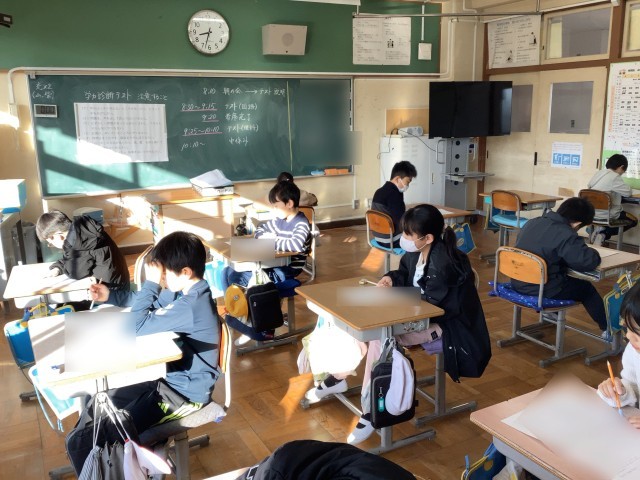 今日は国語と理科のテストに取り組み、どの学級でも児童一人一人が問題と向き合い、最後まで集中して取り組む姿が見られました。