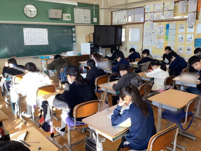 本日、4~6年生は県学力診断のためのテスト2日目に取り組み、算数と社会のテストを実施しました。