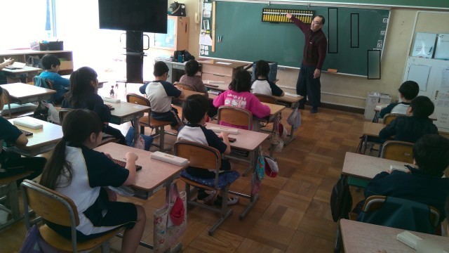 講師の方は、そろばんを通じて本校に10年に渡ってご協力くださっており、楽しい話を織り交ぜながら、そろばんの初歩を分かりやすく説明してくださいました。