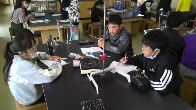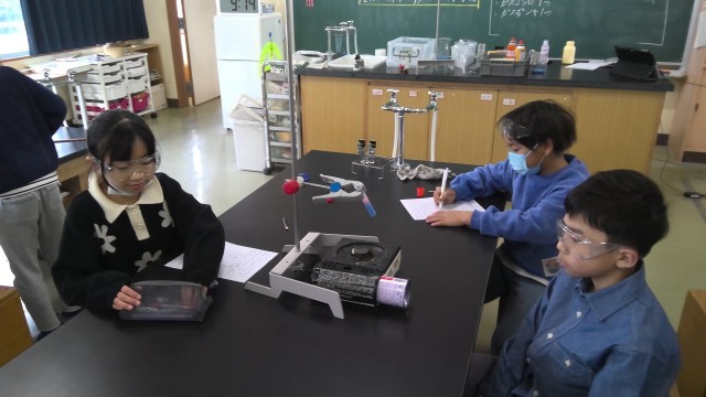 理科では、「ものの温まり方」について学習しています。今日は水の温まり方の実験を行いました。温度が上がると変色するインクを混ぜた水を試験官に入れ、熱していきます。安全に気をつけながら協力して実験に取り組むことができました。