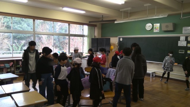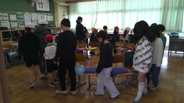 今年度最後の縦割り班活動が行われました。これまで毎回の縦割り班活動を企画し、まとめてくれた6年生への感謝の気持ちを込めて、今回は5年生企画の活動です。あいにくの天候で、室内での活動となりましたが、フルーツバスケットやいす取りゲーム、ハンカチ落としやじゃんけん列車、宝探しなど、みんなが楽しめる遊びを5年生が一生懸命考えてくれました。最後には、これまでの感謝の気持ちをみんなで6年生に伝えました。6年生、一年間ありがとうございました。