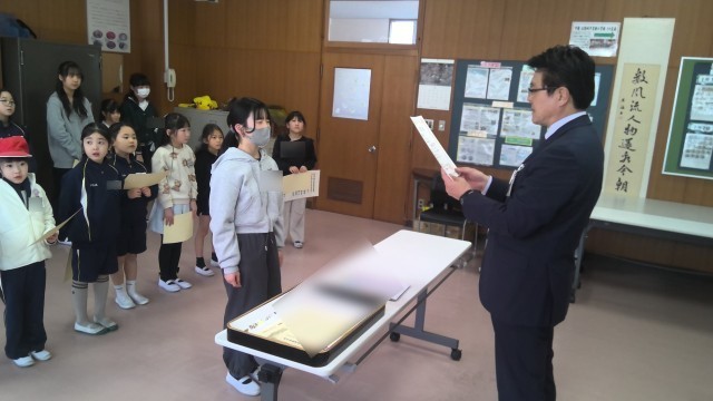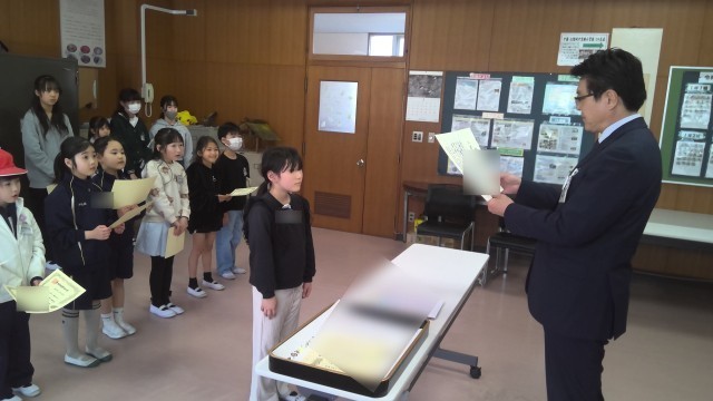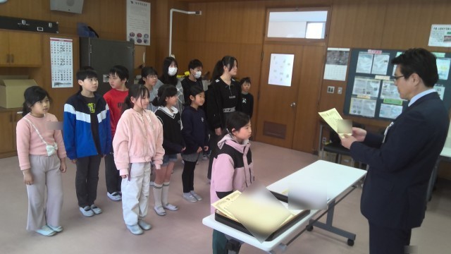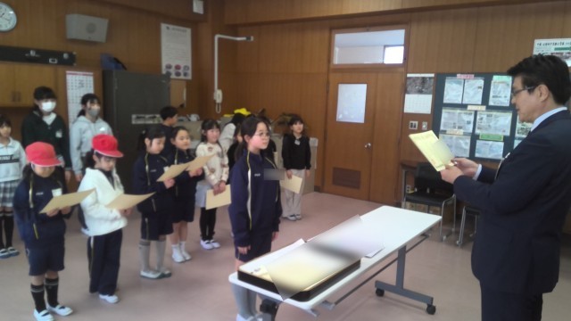 取手市民美術展(市展)の書写や絵画、工作等の表彰を行いました。一生懸命取り組み、学級の代表として市民美術展に展示されたみなさんです。また、学校代表として県展へ展示された児童も表彰をおこないました。みなさん、本当によくがんばりました。