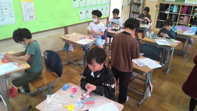 カラフルな粘土を混ぜたり、粘土でいろいろな形を作ったりして、一人一人の考えた設計図を形にしていきました。一人一人の個性が表れた素敵な作品が出来上がりつつあります。