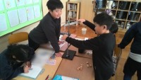 外国語活動の様子です。「How many?」の学習で20までの数を練習しています。ペアになって、数を当てるゲームをしたり、音楽に乗って歌を歌ったりしながら楽しく学習しました。