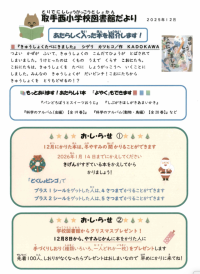 取手西小学校4階図書館より、図書館だよりをお届けします。たくさん本を読み、心を豊...