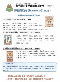 取手西小学校4階図書館より、図書館だよりをお届けします。たくさん本を読み、心を豊...