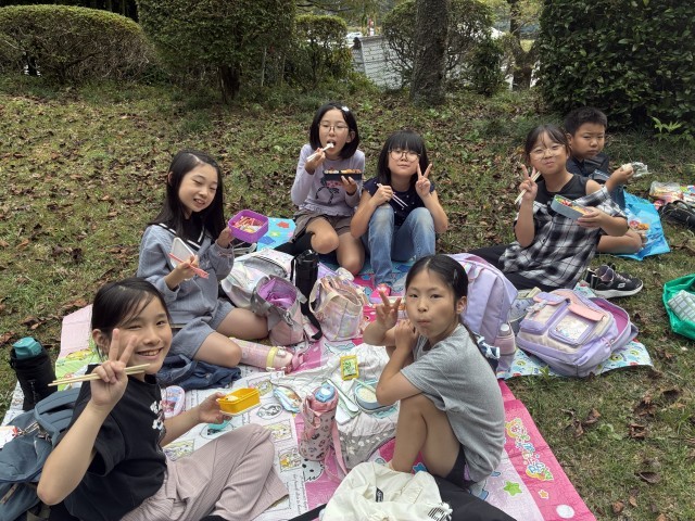 お待たせのお弁当の時間です。満面の笑顔でお箸がすすんでいきます。朝早くからの手作りお弁当の準備をありがとうございました。幸せな時間をありがとうございました。