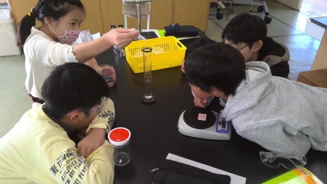 理科で、様々な物質が水に溶けるとどうなるかについて学習しています。今日は、食塩とミョウバンをそれぞれ同じ分量の水に溶かす実験を行いました。溶ける量に限界はあるのでしょうか?今回の実験では、初めてメスシ...