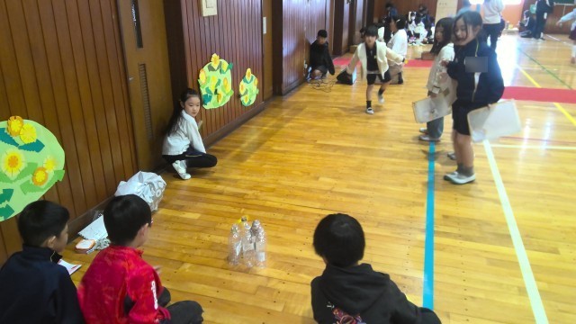 生活科の学習で、2年生が4時間目に”おもちゃフェスティバル”に招待してくれました。アイディア満載の手作りおもちゃが並ぶ体育館で、楽しく遊ばせてもらいました。様々な景品を手に、大喜びの1年生でした。