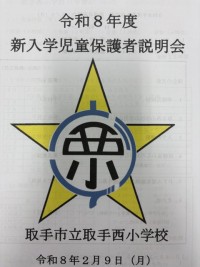2月9日(月)に行われる、取手西小学校へ入学されるお子様の入学説明会についてご連絡します。 ・受付9時45分~(体育館にて) ・説明会10:00~ (体育館にて) ・持ち物 筆記用具、上履き、諸学...