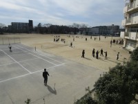 昼休み元気な声がグラウンドから聞こえてきました。グラウンドを見ると、生徒たちがサッカーやテニス、バレーボール等をして楽しんでいる様子が見られました。風は少し冷たい中でしたが、生徒たちは気にせず、元気よ...