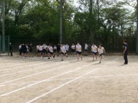 2年生の体育:50m走の様子です。速く走るためのスタート、足や手の動かし方などの理論を学んだあと、実際に走る練習を行いました。体力テストでの好記録に向けてこれから練習を行っていきます。