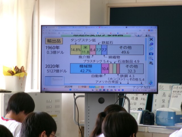 社会科では韓国の国の発展、理科では蒸留について、学んでいるようすが見られました。