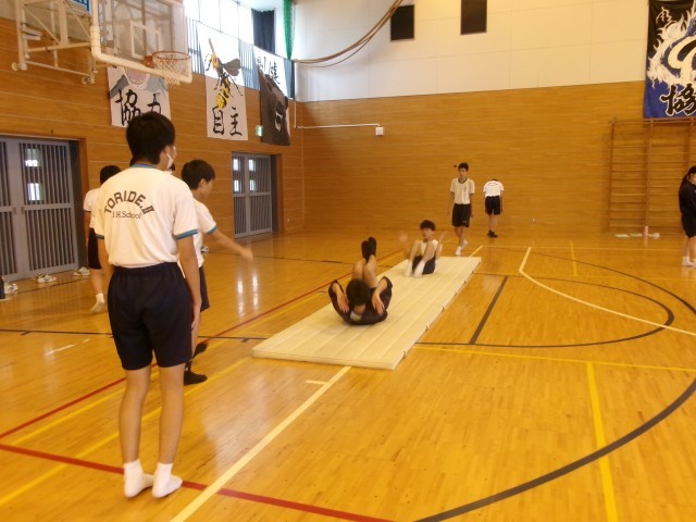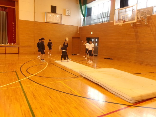 友達と見合い、教え合いながら一人一人が自分の技の向上を目指して活動に取り組む様子が見られました。