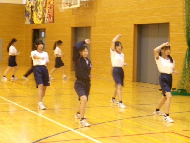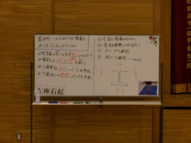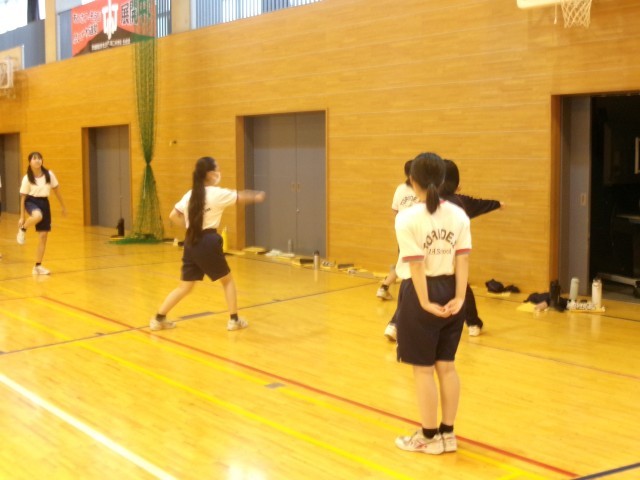 体育館に入ると気合いの入った掛け声、そして、掛け声に合わせた形の練習に一生懸命な生徒たちの姿が見られました。