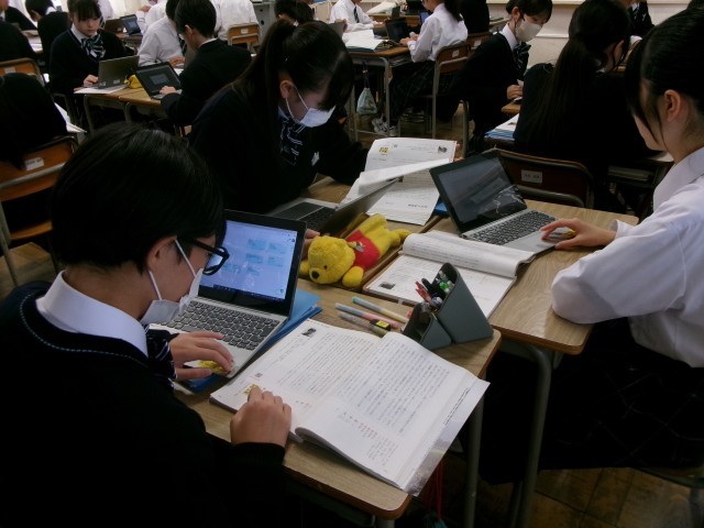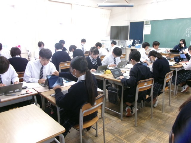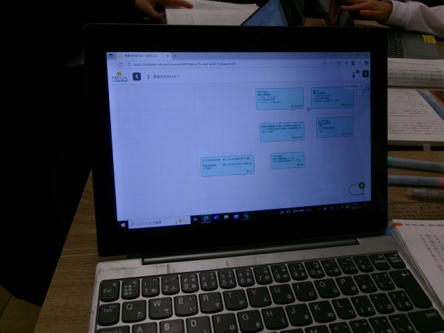 タブレット端末を効果的に活用し、生徒たちは自分の考えをまとめ、友達との比較検討を通して深めていくことができました。