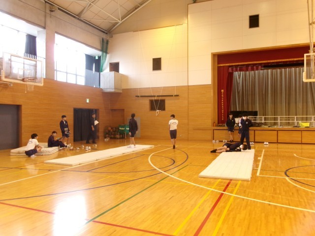 マット運動に取り組む3年生。