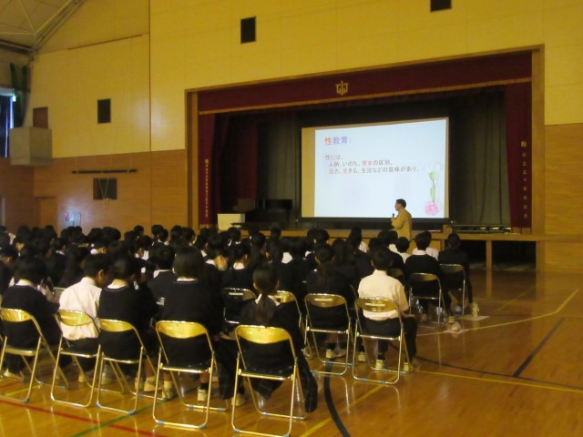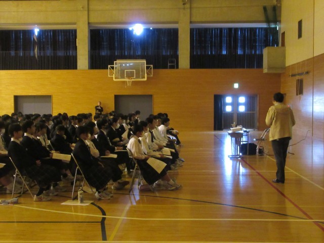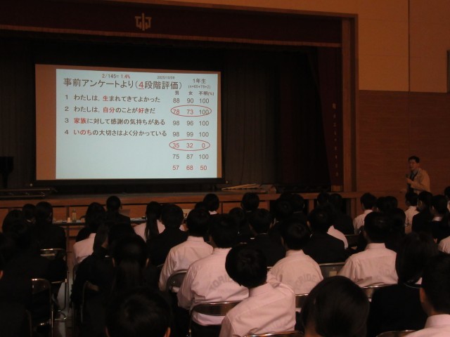 『自分(いのち)を大切にして生きるために~君は愛されるために生まれた~』という内容で、いきるということについて生徒たちが考え、今後の生き方にも参考になるようなお話を聞くことができました。