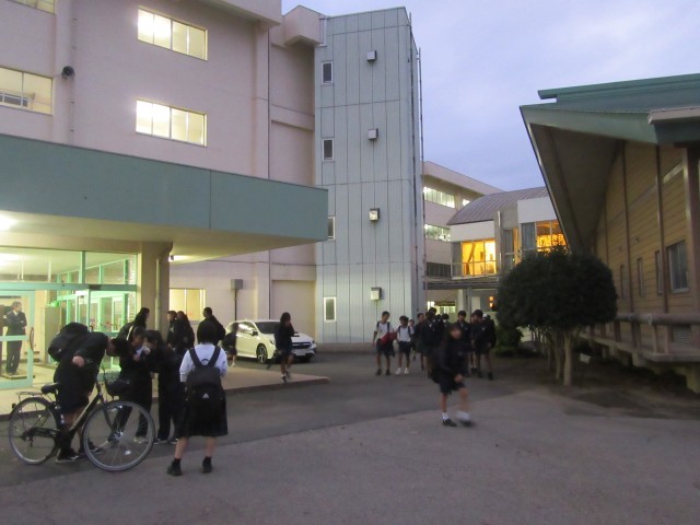 10月も後半に入り、日没も早くなり生徒たちの下校時刻になると外は暗くなっています。