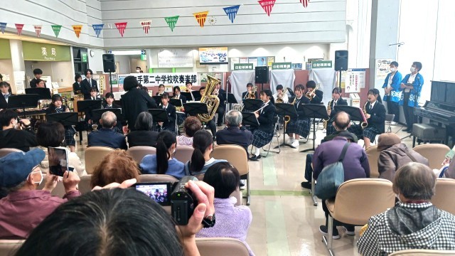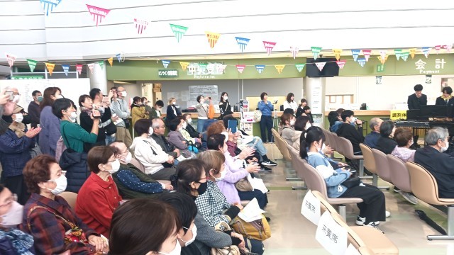 毎年、招待をいただいてミニ演奏会を開かせていただいています。今年も200人以上のお客様の前で楽しい演奏を披露しました。今回のメンバーは大半が1年生というフレッシュさ、かわいらしさを前面に出した演奏となりましたが、会場のお客様からはたくさんの温かい拍手をいただきました。