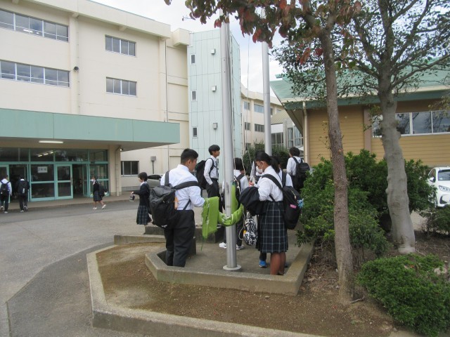 本日もすっきりとした秋晴れのもとでのスタートとはなりませんでしたが、生徒たちの元気な声で1日の学校生活が始まりました。