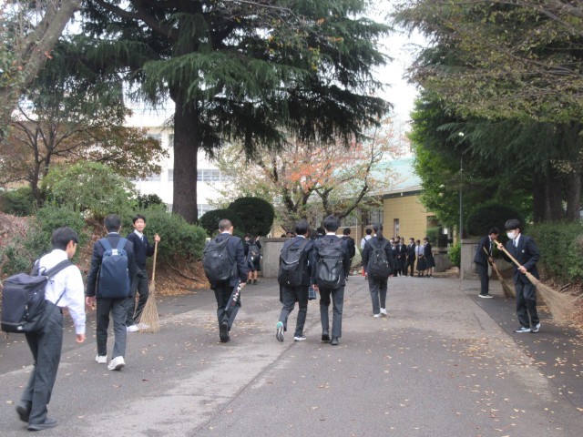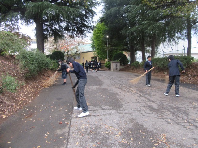 落ち葉掃きをしている生徒がいましたので、「委員会としてやっているの?」と聞いたら、「委員会の日ではないけれども、自主的にやっています。」という言葉が返ってきました。