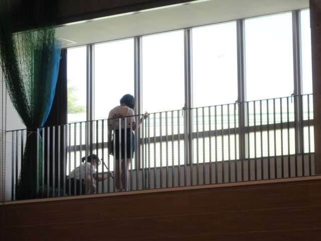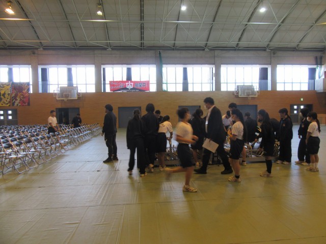 体育館に行くと、明後日の松籟祭に向けて1年生が会場準備を行っていました。