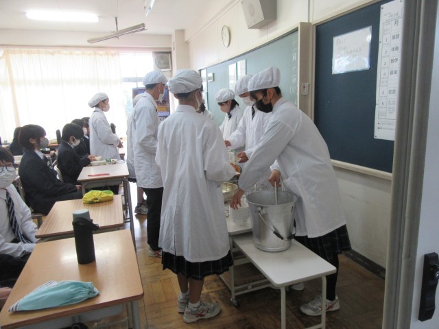 生徒たちが好きなメニューでもあったので、おかわりの時には、授業の時以上にたくさんの生徒が手を挙げていました。