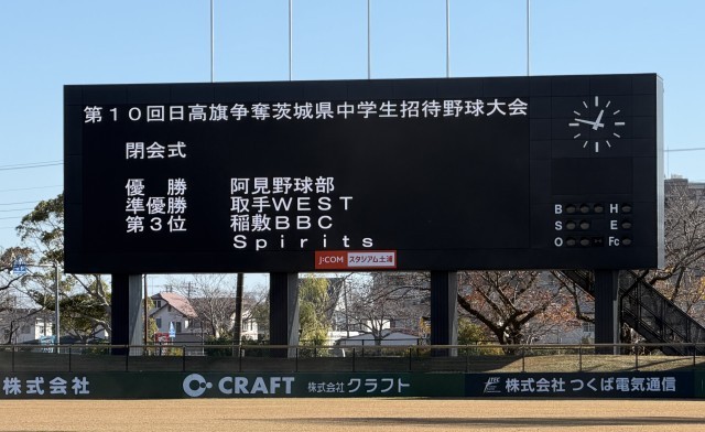本日、「第10回 日高旗争奪茨城県中学生招待野球大会」の最終日が行われ、本校野球部所属の「取手WEST」が準決勝・決勝に臨みました。