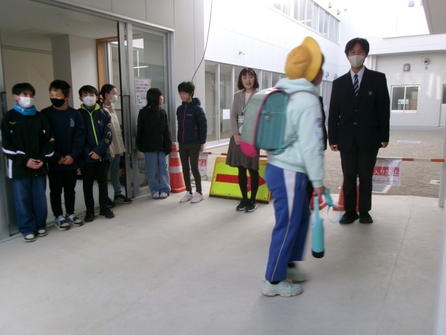 白山小学校にて小中連携事業の一環としてあいさつ運動が行われました。