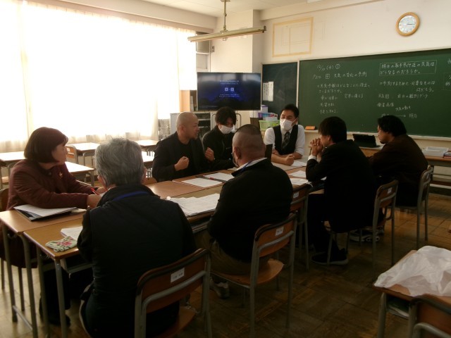 授業後、本日の授業を全教職員で振り返り、明日からの授業実践につながるような展開や工夫についての話合いが行われました。