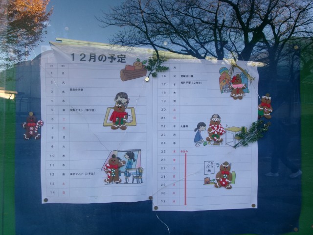 風邪やインフルエンザ等の感染症に対して、配慮が必要な毎日が続いていますが、冬休みまでの登校日数も、今日を含めて8日間ほどとなりました。