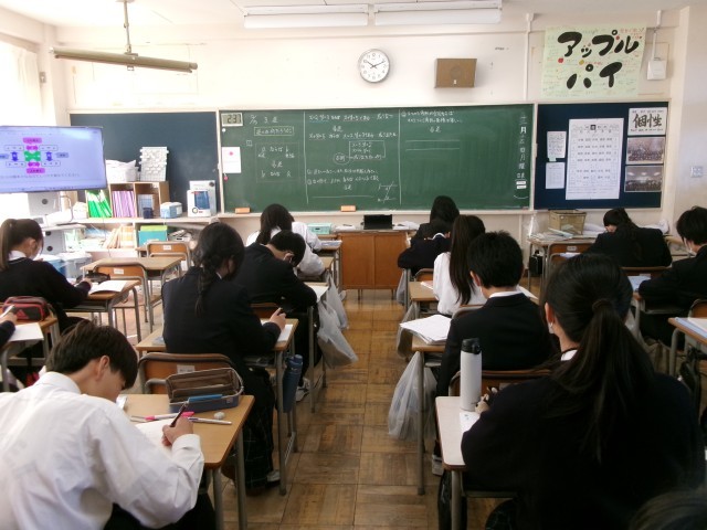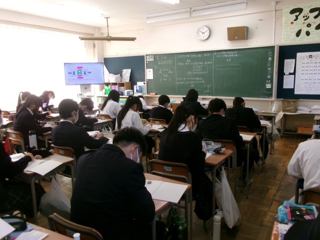 授業の中では、「2つの三角形が合同ならば、その2つの三角形の面積は等しい」の逆は、成り立つか・成り立たないのかを理由も含めて生徒たちは一生懸命に考えていました。