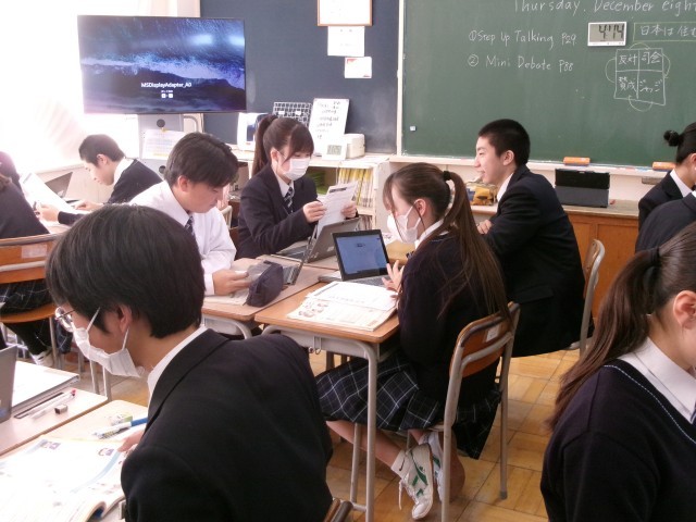 Topic:Japan is a good country to live in.というテーマで、少人数でのディスカッションに取り組みました。