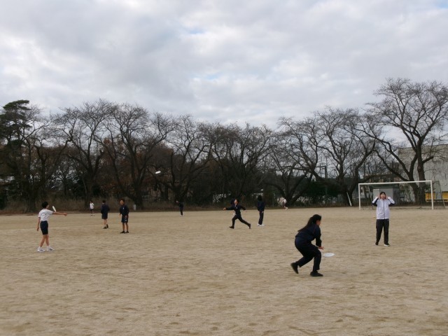 それでも、生徒たちは笑顔で楽しそうにフライングディスクを投げたり、追いかけたりしていました。