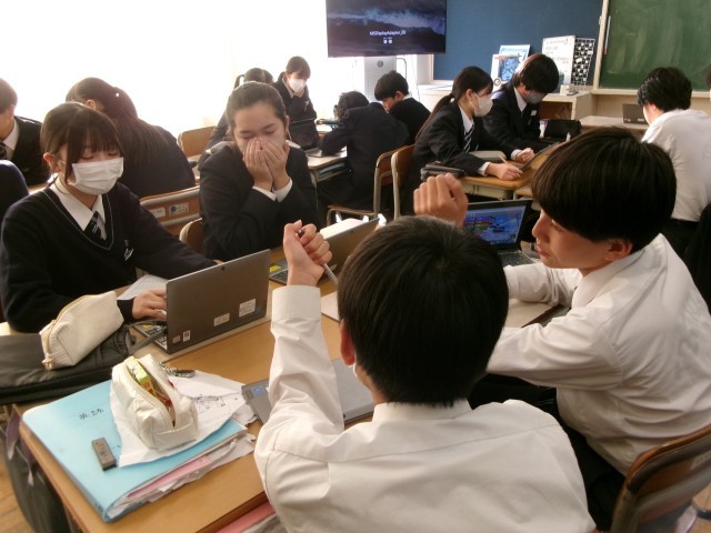 教室で行われた桃鉄。