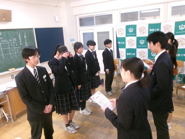 生徒会役員の認証式・引継ぎ式
