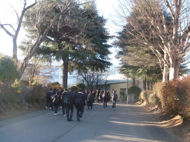 雲一つない青空のもと、生徒たちが笑顔で登校する様子が見られました。