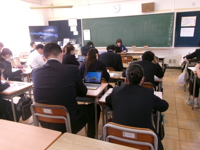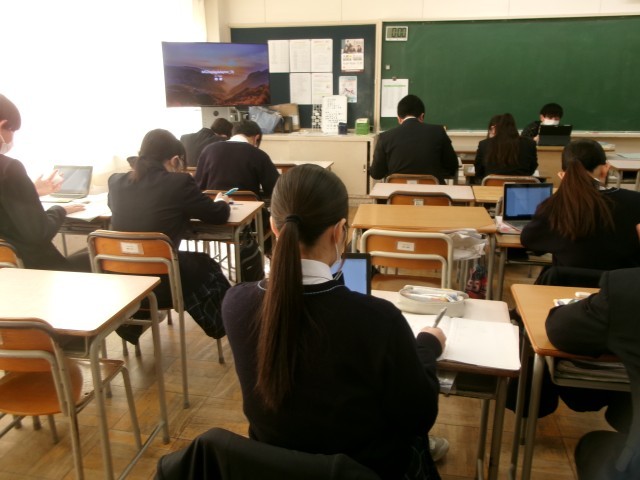 6時間目の授業は、各自での学びの時間となりましたが、いつもの教室とは違い、物音ひとつしない中、生徒たちは黙々と自分の課題に取り組む様子が見られました。