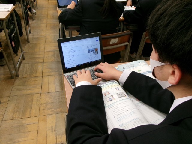 生徒たちは「する」・「見る」・「支える」・「知る」などの関わりがあることを学び、授業では、来月、イタリアで開催される冬季オリンピックについて、どこで開催されるのか、どんな種目があるのかなどを調べました。