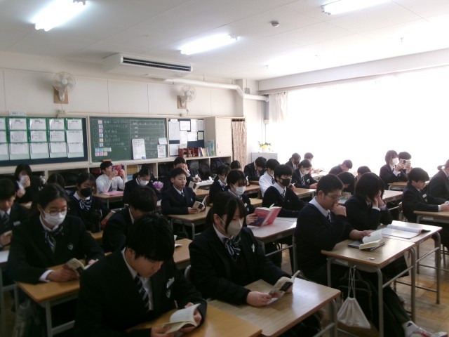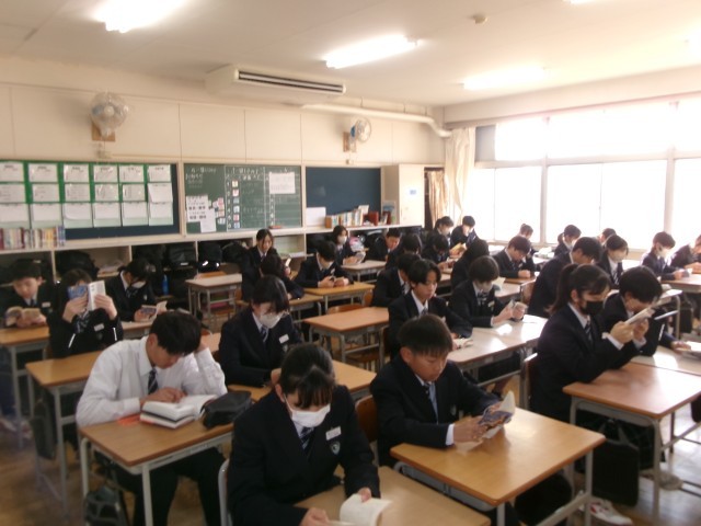 朝読書の時間、1年生の教室に行ってみると、生徒たちが集中して読書をしている様子が見られました。