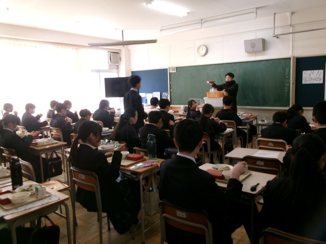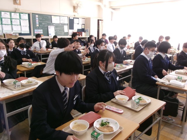風邪やインフルエンザによる欠席生徒が増えてきているので、今日から前向きで、黙食を実施するようにしました。